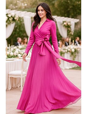 Linea ad A Lunghezza alla caviglia Vestito da Festa Abito da Cocktail Abito da invitata a nozze Abito da cerimonia per signora Manica Lunga Colletto a Camicia Elegante Formale Ospite di nozze Chiffon