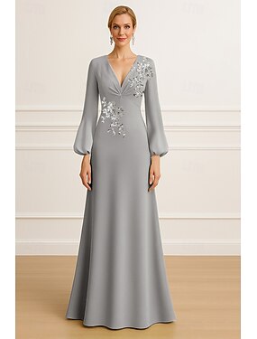 Abito da ospite per matrimoni in stile A-Line fino al pavimento Abiti formali Abito da sera Abito per la madre della sposa maniche lunghe scollo a V elegante vintage taglie forti paillettes con