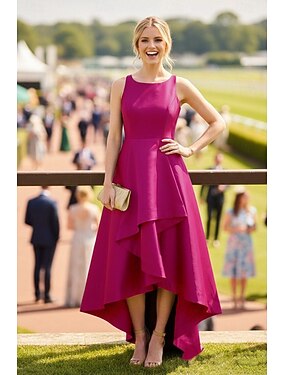 Linea ad A Lunghezza Tè Abito da invitata a nozze Abito Formale Abito da sera Abito da cerimonia per signora Senza Maniche Senza Spalle Elegante Semplice Formale Chiffon Elasticizzato con Pieghe Fiore