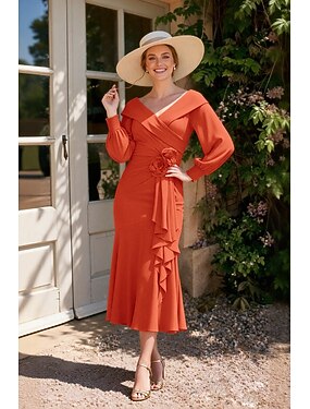 Linea ad A Lunghezza alla caviglia Vestito da Festa Abito da Cocktail Abito da invitata a nozze Abito da cerimonia per signora Manica Lunga Scollo a V Elegante Formale Ospite di nozze con