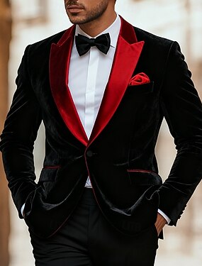 Per uomo Giacca blazer Tuxedo Formale Matrimonio Natale Tasca Natale Festa Autunno & Inverno Tutte le stagioni Velluto Tinta unita Base Monopetto Un Bottone Giacca Nero