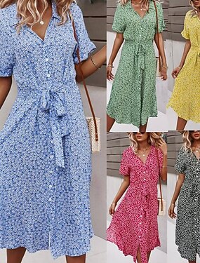 Per donna Abito Midi Vestito Casual Abito a trapezio Elegante Casual Quotidiano Vacanza Vestibilità comoda A righe Manica Corta Girocollo Grigio Azzurro Estate Primavera