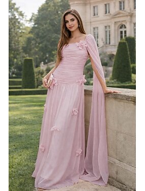 Linea ad A Lunghezza al pavimento Abito da Sera Abito formale Elegante Pastello Matrimonio informale / diurno Senza Maniche Collo quadrato Festa serale Matrimonio Mantelle Chiffon con Fiori 3D