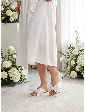 ciabatte basse in raso bianco da donna - comode scarpe da sposa per matrimoni in hotel la mattina