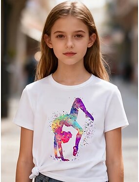 Ragazze 3D Cavallo Maglietta Manica Corta Estate Primavera Moda Essenziale Bambini 4-12 Anni Girocollo All'aperto Casuale Quotidiano Vestibilità regolare