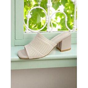 sandali da donna con tacco a blocco in maglia arancione – muli alla moda con punta aperta e texture per l'uso quotidiano e gli appuntamenti casual