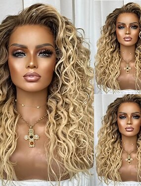Parrucche brasiliane con capelli umani biondo cenere e mèches, chiusura in pizzo 5x5, parrucca frontale in pizzo 13x4, parrucca ondulata con parte libera e attaccatura naturale dei capelli.