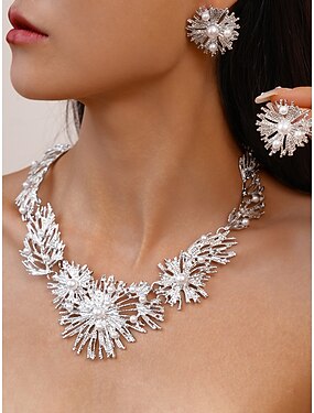 1 set Gioielli da Sposa per Donne Regalo di Matrimonio con Perle Imitazione Strass Lega Link Catena Fiore Botanico Fidanzamento per impressionare con l'Abito