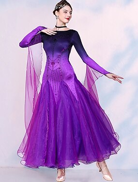 abito da ballo da sala, abiti da competizione di danza moderna per donna, abiti a maniche lunghe, costumi da ballo per valzer
