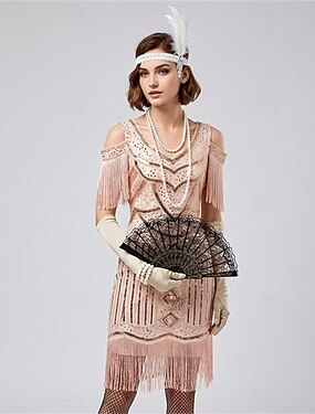 Anni 1920 Fascia Flapper Il grande Gatsby Senza colletto Costume Per donna Carnevale Mascherata Abbigliamento da sera Mascherata Adulti 1 Paio di orecchini 1 Bracciale Guanti Tutte le stagioni