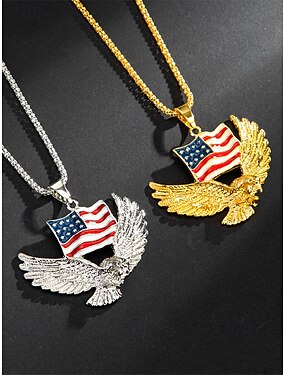 Collana con pendente in lega della bandiera USA e aquila per uomo per il 250° Anniversario degli Stati Uniti disponibile in oro e argento perfetta per USA Giorno dell'Indipendenza e abbigliamento