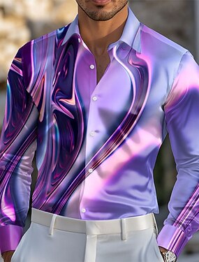 Per uomo Camicia Camicie Camicia con bottoni Manica lunga Moda Casual Abiti da sera per feste Casual Informale Estate Primavera Autunno Collo ripiegabile Abbottonare Stampa 3D Viola