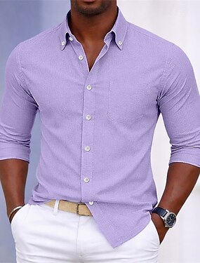 Per uomo Camicia Camicia elegante Camicia button-down Semplice Casuale Quotidiano Viola Manica Lunga Collo ripiegato Tutte le stagioni Abbigliamento Patchwork