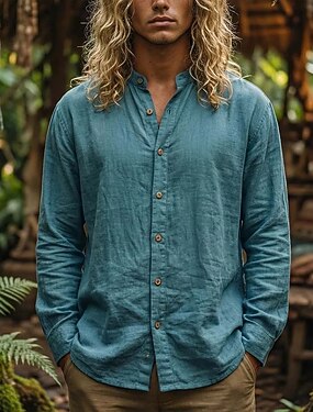 Per uomo Camicia di lino Camicia popover Camicia Estiva Abbigliamento da spiaggia Camicie retrò Camicia etnica All'aperto Vacanza Blu Verde Manica Lunga Scollo a V Estate Primavera Abbigliamento