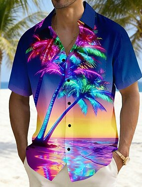 Per uomo Albero di Cocco Piante Tropicali Bagliore al neon Camicia Camicie hawaiane Camicia Aloha Manica Corta Hawaiano Abbigliamento casual alla moda Vacanza Ferie Estate Collo ripiegato Stampa 3D