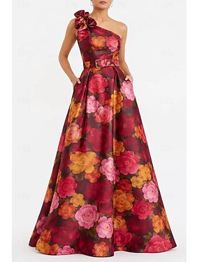 Tubino Colonna Lunghezza al pavimento Abito Stampato Abito da sera Abiti da Ballo Abito da Sera Da principessa Abito formale Elegante Vintage Senza Maniche Monospalla Festa in giardino Matrimonio Raso