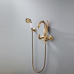 set di rubinetti per doccia in ottone vintage con doccetta a mano, miscelatore per vasca da bagno tradizionale con doppia maniglia a parete