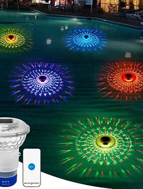 Dosatore di cloro solare galleggiante con spettacolo di luci colorate, dosatore di cloro galleggiante per piscina con comando a pulsante, dosatore di cloro galleggiante con rilascio regolabile,