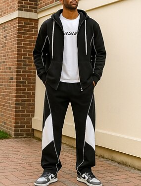 Per uomo Tuta da Ginnastica Tuta da Allenamento 2 Pezzi Cerniera completa Tinta unita Set di Abbigliamento Completo Abbigliamento Primavera Autunno Inverno Nero Bianco Allenamento attivo Jogging Corsa