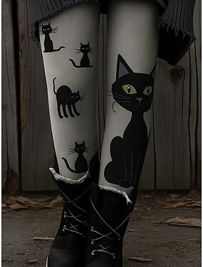 Leggings Donna Vacanza Vintage Stile Etnico Lunghezza Completa Alta Vita Grafica Animale Gatto Stampa 3D Asciugatura Rapida Traspirabilità Morbida Stretchy Esterno Casa Causale Nera Bianca Arancio