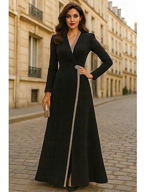 Per donna Abito da smoking Tubino Colonna Formale Crepe Elasticizzato Elegante Manica Lunga Lunghezza Tè Risvolto a punta