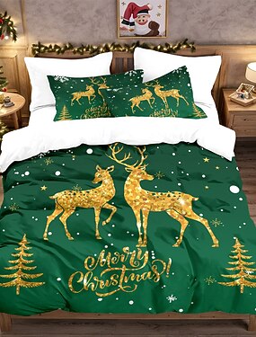 Set copripiumino natalizio da 3 pezzi con stampa di cervi dorati, biancheria da letto comoda per hotel o camera da letto, include 1 copripiumino + 2 federe, letto matrimoniale, morbido pile corto