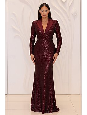 Per donna Abito da smoking Linea ad A Matrimonio Formale Ospite di nozze Raso Elegante Setoso Manica Lunga Lunghezza al pavimento coscia divisa Scollo a V
