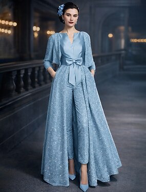 Per donna Abito da smoking Linea ad A Matrimonio Formale Ospite di nozze Raso Tessuto elasticizzato a 4 vie Elegante Scintillante Manica 3/4 Lunghezza al pavimento Colletto a Camicia Cerniera