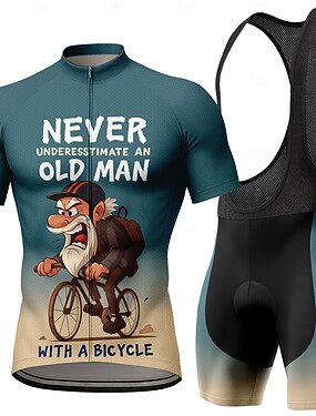 Per uomo Maglia da ciclismo con pantaloncini con bretelle Manica Corta Mountain Bike MTB Ciclismo su strada Blu Rosso Blu Reale Geometrico Non sottovalutare mai un vecchio con una bicicletta