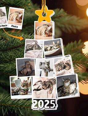 Ornamenti per Albero di Natale con Foto di Gatti Personalizzati in Acrilico 2D - Cornici Foto Decorazioni per Albero di Natale Regali da Appendere per Famiglia e Amici