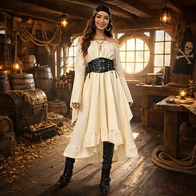 Retrò Vintage Medievale Rinascimento Abito celtico Vichingo Elfico Costume Per donna Celtico Costumi da pirata Fantasia Halloween Carnevale Mascherata LARP Adulti Vestito
