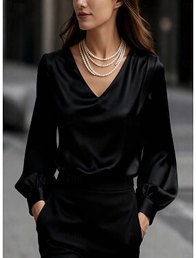 Natale Per donna Top Eleganti Semplice Elegante Vintage Quotidiano Manica Lunga Manica a Vescovo Scollo a V Top Regolari Blu Nero Bianco Rosa Vino Primavera Autunno Inverno