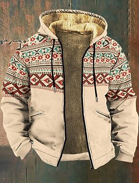 Per uomo Grafico Stile Boho Felpa con Cappuccio Giacca di pelle Moda Etnico Casual Manica Lunga Con Cappuccio All'aperto Sport all'Aperto Uscire Marrone chiaro Arancione scuro Giallo Blu Arancione