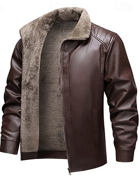 Per uomo Giacca in Ecopelle Giacca in Pile Giacca da Biker Giacca da Moto Vacanza Quotidiano Antivento Caldo Tasca Autunno & Inverno Semplice Moda Classico Bavero Regolare Nero Caffè Giacca