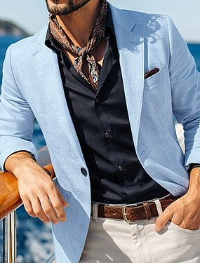 Per uomo Giacca blazer Blazer di Lino Colletto ad incastro Moda Casual Tinta unita Blazer Blu turchese Grigio chiaro Blu scuro Vestibilità su misura Monopetto Un Bottone