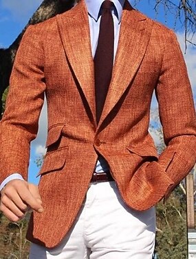Per uomo Giacca blazer Blazer di Lino Affari Lavoro Festa serale Elegante Neutro Autunno Inverno Lino Tinta unica Monopetto Giacca Arancione