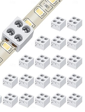 Confezione da 10, confezione da 20 connettori LED a 2 pin, 8 mm, 10 mm, connettori per strisce LED senza saldatura, connettori per strisce LED bianche con cacciavite, da striscia a striscia per