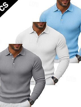 3 pezzi da uomo maglia a coste polo da golf camicie multi-pack strada casual risvolto manica lunga semplice moderno bottoni primavera autunno tutte le stagioni slim fit maglia a coste
