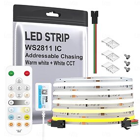 Strisce LED COB indirizzabili 2700K-6500K, luce bianca a inseguimento, CCT, dual-mod, IC intelligente, luce a nastro regolabile, 16,4 piedi, super luminosa, dimmerabile, controllo vocale Alexa, per