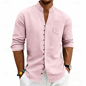 Per uomo Camicia Camicia di lino Camicia Estiva Camicia da Spiaggia Semplice Casuale Vacanza Nero Bianco Rosa Blu marino Manica Lunga Colletto alla coreana Estate Primavera Abbigliamento Tasca