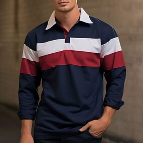 Per uomo A righe Polo da Rugby Manica Lunga Magliette polo Colletto Casual Formale All'aperto Abbigliamento Quotidiano Stampa 3D Bottoni Primavera Autunno Inverno Blu inchiostro