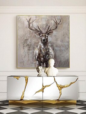 Fatto a mano Hang-Dipinto ad olio Dipinta a mano Quadrato Astratto Animali Classico Moderno Senza telaio interno (senza cornice)
