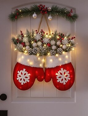 ghirlanda natalizia per esterni per porta d'ingresso, ghirlanda invernale, decorazione da parete per finestre con luci, ghirlanda di pino artificiale natalizio illuminata con pigne, aghi, bacche e fiocco