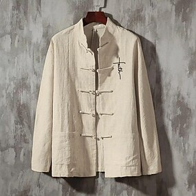 Per uomo Camicia di lino Camicia casual Camicia con Bottoni Semplice Vacanza Streetwear Nero Bianco Blu marino scuro Beige Manica Lunga Colletto alla coreana Primavera & Estate Abbigliamento Tasca
