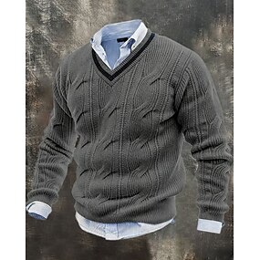 Per uomo Felpa Maglione Maglione a maglia A Coste Maglia Top Regolari Lavorato a maglia Tinta unica Scollo a V Moda Streetwear Casuale Abbigliamento quotidiano Abbigliamento Autunno Inverno Nero