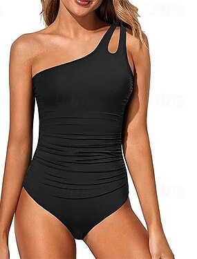 Per donna Costume Intero Monospalla Costume da Bagno Tinta unita Costumi da bagno Nero Rosso Asciugatura Rapida Leggero Traspirante Senza Maniche - Surf Spiaggia Nuoto Estate Primavera