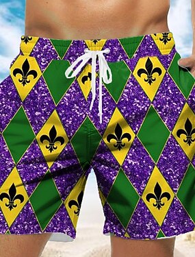 Martedì grasso Per uomo Rombo Carnevale Fleur de Lis del Martedì Grasso Costumi da bagno Pantaloncini da mare Pantaloncini da Surf Misura del girovita medio Moda Casual Feste Ferie Tasche Laterali