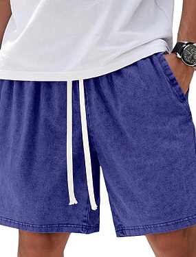 Per uomo Shorts Pantaloncini Estivi 100% cotone Pantaloncini casual Pantaloncini con lavaggio acido Tasca Elastico in vita Tinta unita Lavato Comodità Traspirante Sopra il ginocchio Casuale