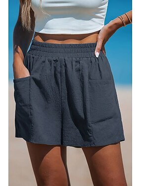 Per donna Finto cotone e lino Chinos Shorts Vacanza Moda Streetwear Corto Vita Alta Semplice Tasca Fascia Elastica Comodo Comodità Morbido Elasticizzato All'aperto Vacanza Streetwear blu navy Nero