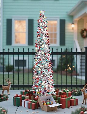 Albero di Natale circolare pieghevole rosso e verde da 1,5 m/5 piedi, per interni ed esterni, cortile, soggiorno, festa, atmosfera, luci decorative, oggetti di scena, 10 m-100 LED, batteria AAA